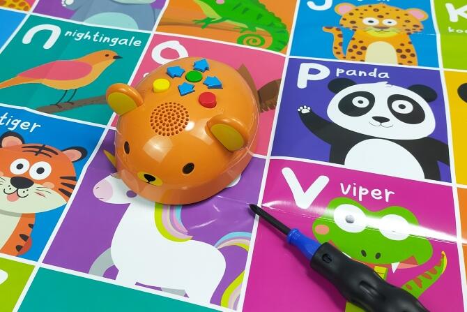 上から。操作ボタンとスピーカーがあります。ボタンはシンプルなので3歳のお子さんから遊べます。