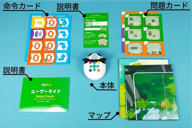 Pandaは問題カードも付属しますし、障害物を検知できる距離センサーもあります。パソコンやタブレットを使わないタイプでセンサーがあるのはかなり珍しいです。