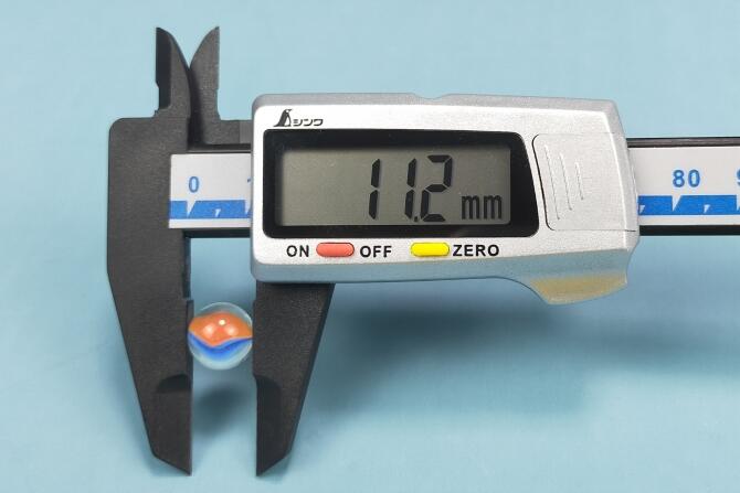 大きさは約11.2mmです。かなり小さいビー玉です。