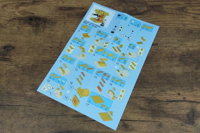 内容物一覧です。説明書とブロック一式、ステッカーです。