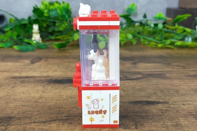 完成したものがこちら。クレーンゲームです。景品は犬のぬいぐるみです。