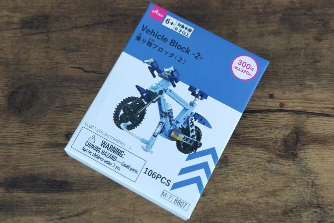 乗り物ブロック(2)」はレゴブロックと互換性のあるブロックでマウンテンバイクを作れるダイソーのブロック玩具です。