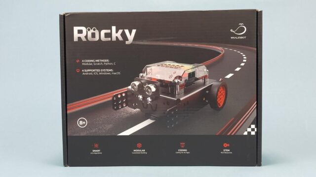 「Rocky」はライントレースや障害物検知、音声検知、明るさ検知などができる組み立て式のロボットカーです。また、リモコン操縦もできますよ。