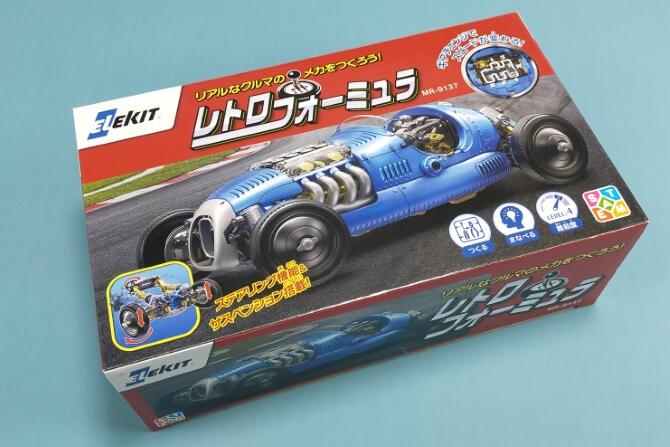 「レトロフォーミュラ」はリアルな車の模型を作りながら車の仕組みや構造を学べるSTEAMキットです。
