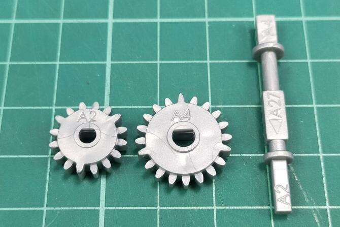 そして、間違いやすそうなギアや軸には番号や向きが書いてあるので安心です。