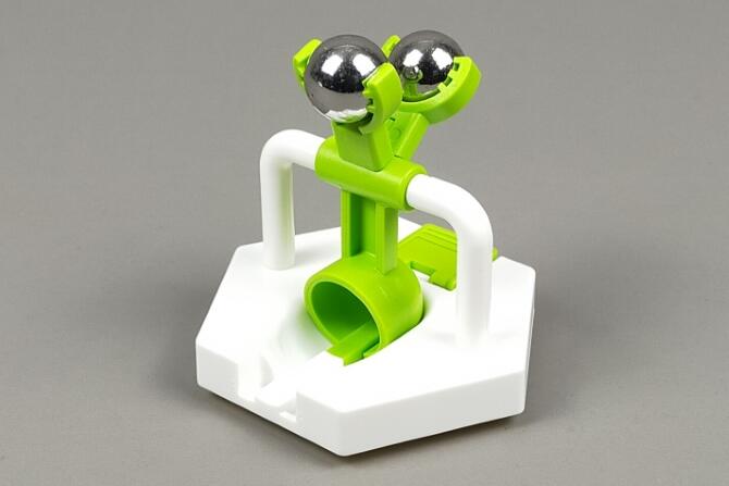これがメインのスクープパーツです。取り付けてある鉄球は重りで、ボールが入ると重りのおかげで回転してボールを持ち上げます。