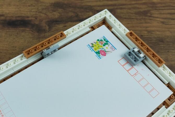 フレームには留め具があり、ハガキを入れることができます。