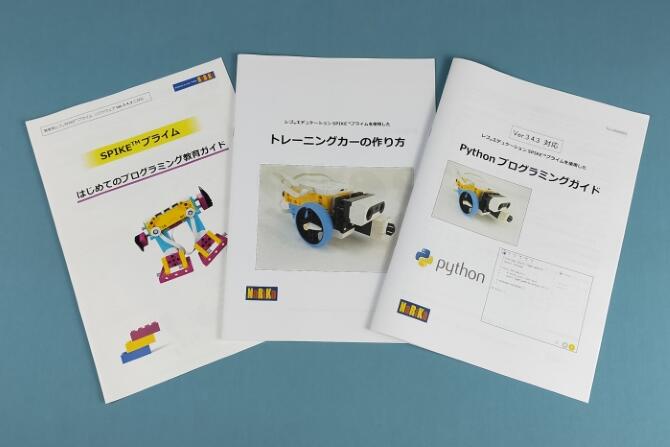 右はオリジナルカーをPythonでプログラミングするための教材で、中央はオリジナルカーの組み立て説明書です。