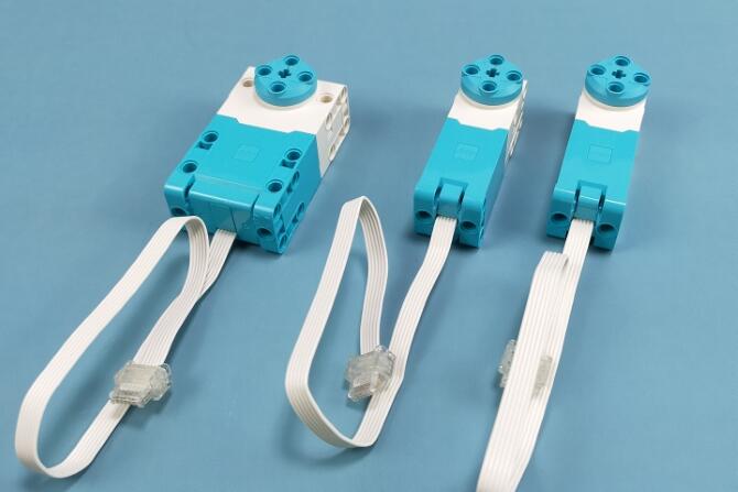 モーターはサイズ違いが2種類で3個付属します。回転方向、回転数、回転角度、回転速度、回転位置を指定して動かすことができます。