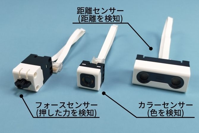 センサー類はフォースセンサー、カラーセンサー、距離センサーです。
