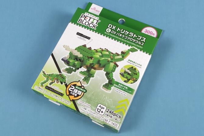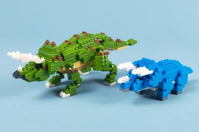 「プチブロック DX トリケラトプス & DX パキケファロサウルス」はnanoblockサイズの小さなブロックで、トリケラトプスかパキケファロサウルスのどちらかを作れるブロック玩具です。
