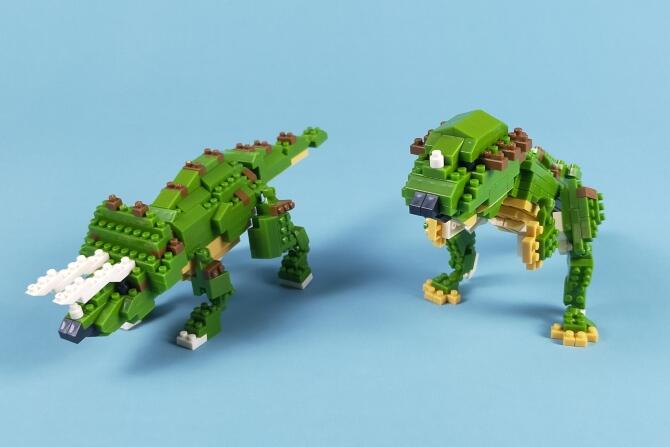 同時期に発売された「プチブロック DX ティラノサウルス」と並べるとこんな感じ。2大恐竜対決です!