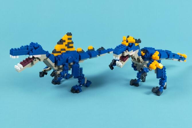「プチブロック DX スピノサウルス & DX ユタラプトル」はnanoblockサイズの小さなブロックで、スピノサウルスかユタラプトルのどちらかを作れるブロック玩具です。
