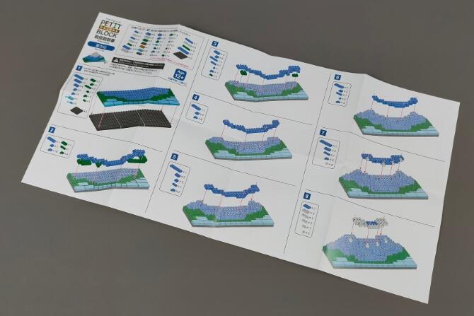 内容物一覧です。説明書とブロック一式です。