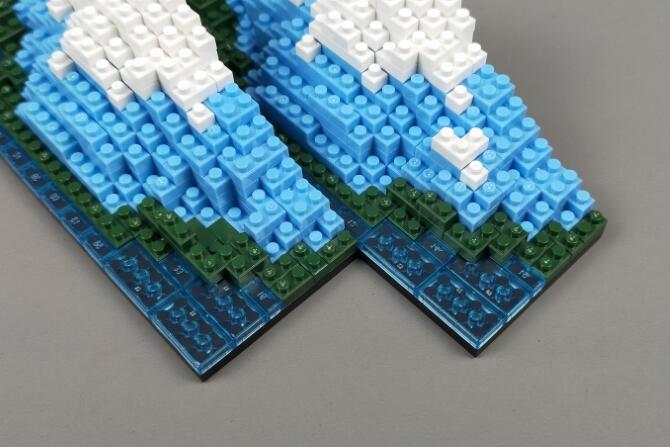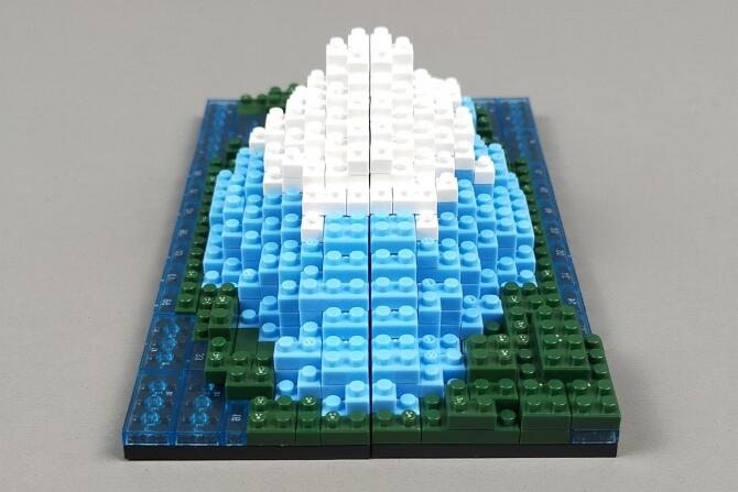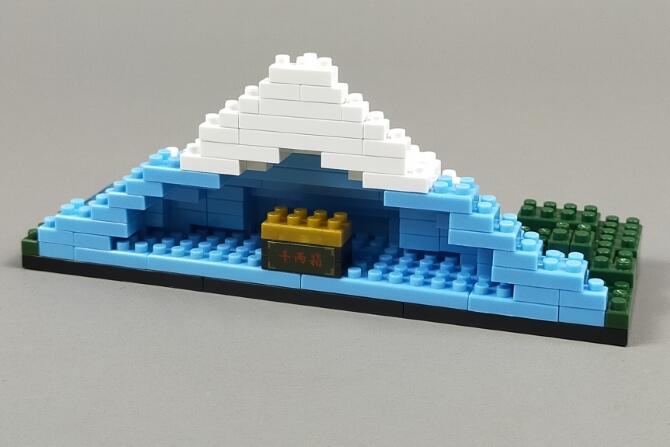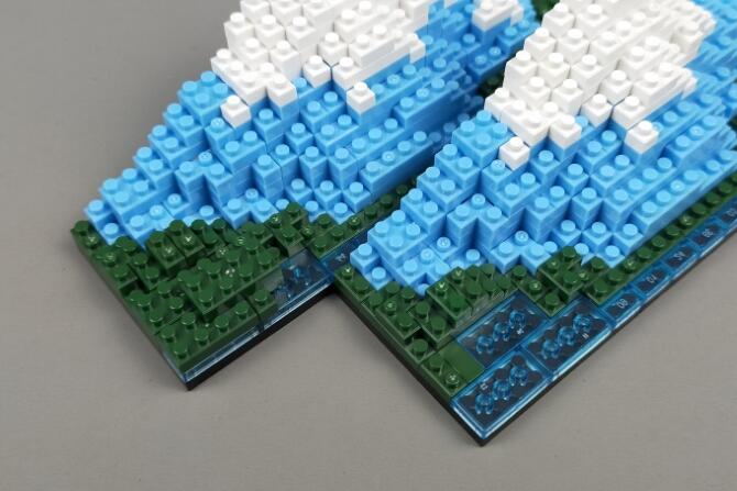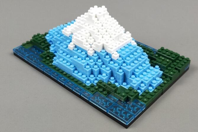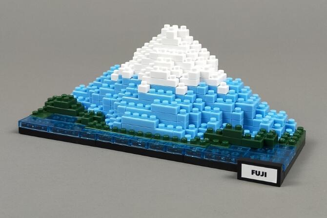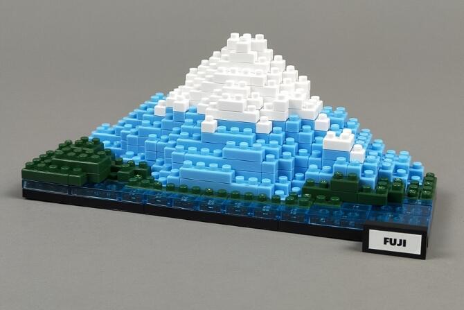 「プチブロック DX 富士山」はnanoblockサイズの小さなブロックで、富士山を作れるブロック玩具です。山梨側と静岡側のどちらかが作れます。