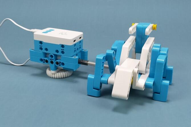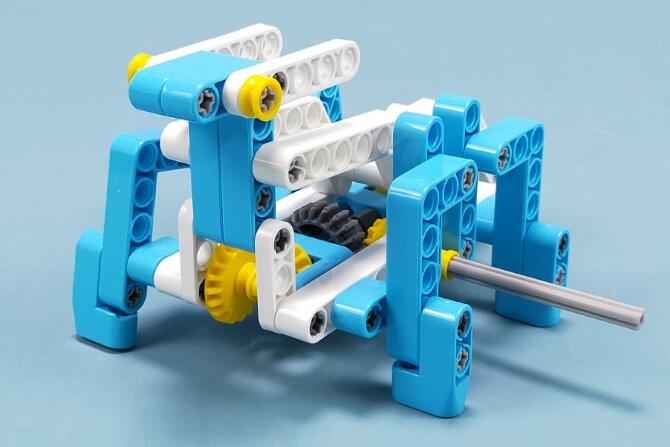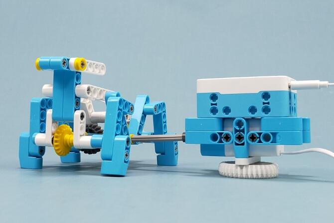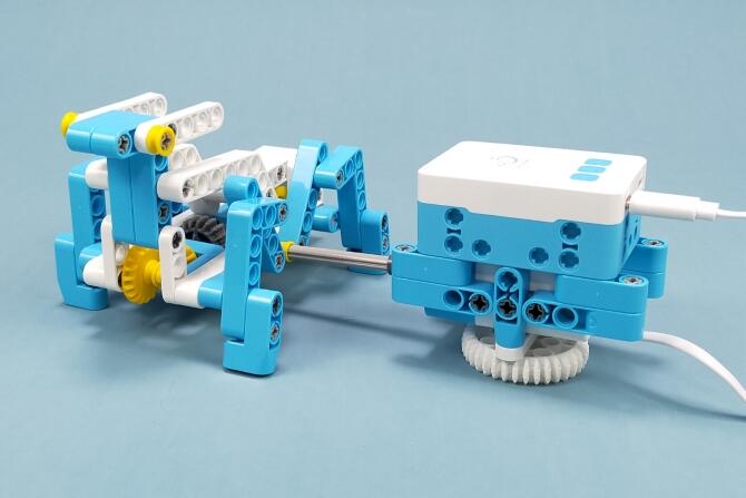 動力源の下の大きなギアはくるくる回転します。これのおかげで、ロバが動力源を中心に動きます。