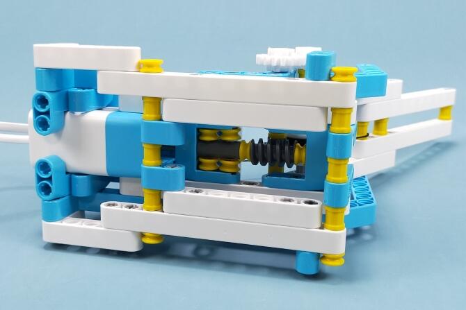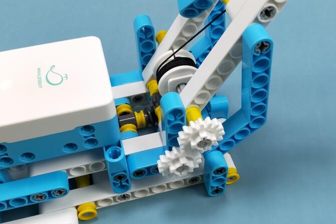 可動部分です。モーターの回転をギアで伝えて、糸を巻き取る仕組みです。