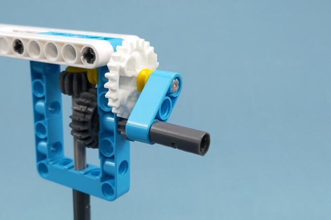 泡立て器はハンドルを回すと先端がぐるぐる回る装置です。小さな力で勢いよく回る構造です。