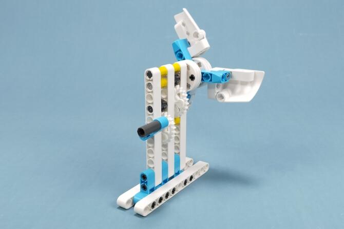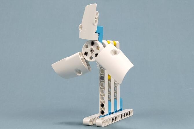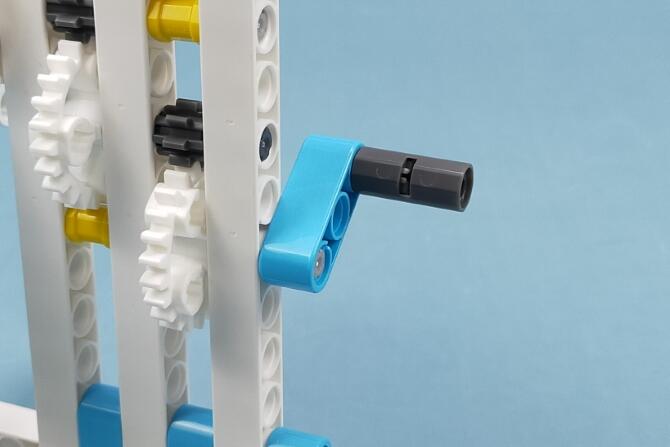 ハンドルを回すとプロペラが勢いよく回転します。ハンドルを1回回すだけでプロペラが何回回転するか観察してみてください。