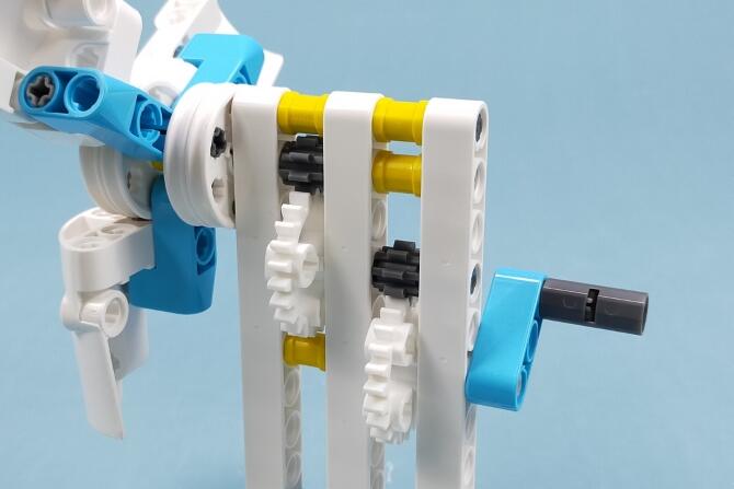横から見るとこんな感じ。ハンドルの回転をギアで増幅しています。